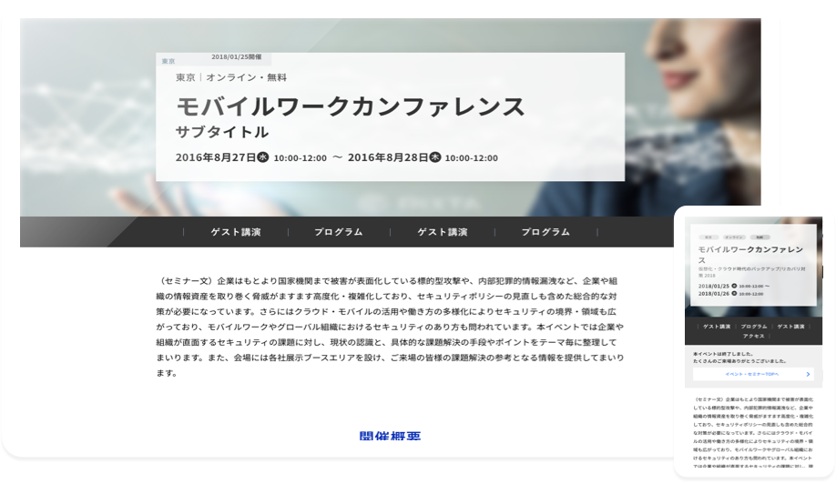 イベント情報ページを作成するビジネス+ITサービス範囲主催社の集客サイトへリンク